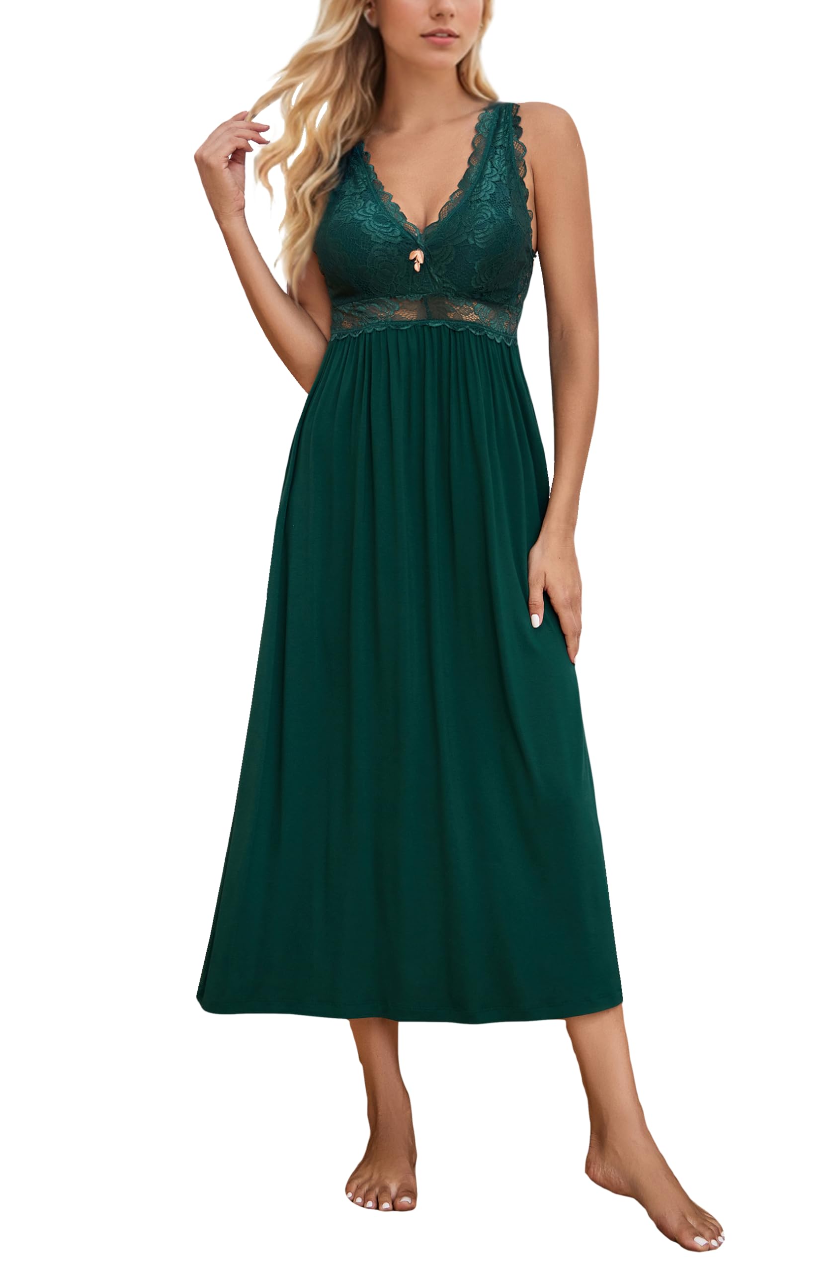 ALCEA ROSEA Womens Sleepwear Lace Lingerie Chemises V Neck Nightgown Long Sexy Sleep Dress Sleeveless Lace for Women Elegant Blackish Green-jersey Large